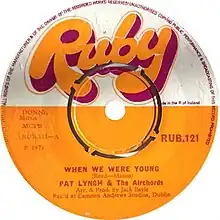 "When We Were Young" was a number one hit single by the Irish showband The Airchords, featuring Pat Lynch on lead vocals.[1] Written by Barry Mason and Les Reed,[2] it reached No. 1 on the Irish Singles Chart on 10 April 1971. The song remained at the top of the charts for just the one week, but was to return to the No. 1 position on 8 May of that same year, this time for a period of four weeks. Lynch and the Airchords had already broken up before the song was releasead.[3] The song became a stadium anthem for Cork Hibernians F.C.[4]