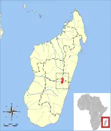 Little is known about the white-tipped tufted-tailed rat because it is known from only two specimens. The first was collected in 1895 or 1896 from the Ampitambe forest, near Ambositra in Fianarantsoa Province and a second 35 km (21.7 mi) north-east of Fandriana in the Fandriana–Marolambo corridor in 2000. Both specimens were collected from montane humid forest at an altitude ranging from 900 to 1,670 m (2,952.8 to 5,479.0 ft).[3] It has not been found during surveys in areas to the north and south of its known range.[1]