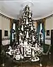 | 1960 | "Presents were piled high under the magnificent tree and stretched for yards into the East Room."[120] | Mamie Eisenhower | East Room[120] | ||