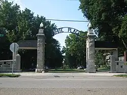The White Place Historic District is a residential historic district in Bloomington, Illinois. The district includes houses on White Place, North Clinton Boulevard, and Fell Avenue bordered to the south by Empire Street (U.S. Route 9) and Emerson Street to the north. These houses were largely built between 1895 and 1928, and many of them were built shortly after S. R. White platted White Place. The homes in the district were designed in a variety of architectural styles; styles prominently featured in the district include Prairie School, American Craftsman, Colonial Revival, Victorian, and Spanish Colonial.[2]