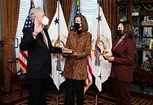 In January 2021, President Joe Biden nominated Burns to become CIA director.[7] He was unanimously confirmed by voice vote in the Senate on March 18, 2021, sworn in officially as director on March 19,[3] as well as ceremonially sworn in by Vice President Kamala Harris on March 23.[8][9] In July 2023, Biden elevated Burns to a position in his cabinet, a largely symbolic action.[10]