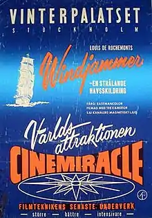 Windjammer is a 1958 documentary film that recorded a 17,500-nautical-mile (32,400 km) voyage of the Norwegian sail training ship Christian Radich. Windjammer was produced by Louis de Rochemont and directed by Louis de Rochemont III. It was the only film to be shot in the widescreen Cinemiracle process, which came with a seven-track stereophonic soundtrack.