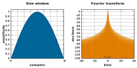 The corresponding function is a cosine without the π/2 phase offset. So the sine window[23] is sometimes also called cosine window.[16] As it represents half a cycle of a sinusoidal function, it is also known variably as half-sine window[24] or half-cosine window.[25]