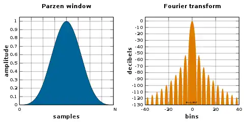 Defining  LN + 1,  the Parzen window, also known as the de la Vallée Poussin window,[16] is the 4th-order B-spline window given by: