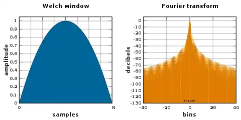 In signal processing and statistics, a window function (also known as an apodization function or tapering function[1]) is a mathematical function that is zero-valued outside of some chosen interval. Typically, windows functions are symmetric around the middle of the interval, approach a maximum in the middle, and taper away from the middle. Mathematically, when another function or waveform/data-sequence is "multiplied" by a window function, the product is also zero-valued outside the interval: all that is left is the part where they overlap, the "view through the window". Equivalently, and in actual practice, the segment of data within the window is first isolated, and then only that data is multiplied by the window function values. Thus, tapering, not segmentation, is the main purpose of window functions.