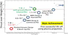 - ↑ Wang C, Roy S (10 July 2009). "Microscale plasma actuators for improved thrust density". Journal of Applied Physics. 106 (1): 013310–013310–7. Bibcode:2009JAP...106a3310W. doi:10.1063/1.3160304. S2CID 119803236.