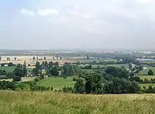 The grassed slopes of The Clumps lead up to summits wooded by the oldest beech tree plantings in England,[2] dating to the 1740s.[3] Standing over 70 metres above their surroundings,[4] the Clumps have a prominent appearance and panoramic views, with the north slopes overlooking villages and towns whose sites mark some of the first settlements of the English.[5] The view from The Clumps was described by the artist Paul Nash, who first saw them in 1911, as "a beautiful legendary country haunted by old gods long forgotten".[6]