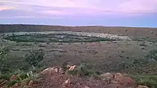 Wolf Creek was a considerably low-budget production, made for around A$1.4 million, with a minimal crew.[15] Producer David Lightfoot stated that the filmmakers wanted to "mak[e] a 5 million dollar film on a 1 million dollar budget".[15] The film was shot digitally on the HDCAM format and was mostly handheld (aside from a few static composite shots).[15] Filming took place over five weeks[22] in Australia's winter months of 2004 almost entirely in South Australia;[23] aerial shots of the crater, however, show the genuine Wolfe Creek crater.[15] The film is set in a real location; however, the actual meteorite crater location is called "Wolfe Creek", and is located in northern Western Australia. The sequences in which the three main characters ascend the edge of crater were shot on a nondescript hillside in South Australia,[24] while beachfront scenes in the first fifteen minutes of the film were shot in Adelaide, standing in for Broome.[25]