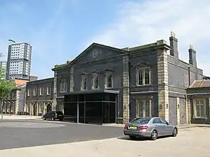 Redevelopment of the Low Level station site began in 2006, retaining the main station building (which is a listed building) whilst the remainder of the station, including the former main southbound platform was demolished to make way for a 'mixed use' retail, hotel and residential development. This redevelopment of the station is now complete, following the opening of Aldi in 2019. The station building itself was destined to become a casino. This has now fallen through.[4] The restored station was home to an art gallery until July 2010.[5] The station building has been transformed into the Grand Station banqueting hall and wedding venue.[6]