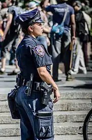 Large city departments have some of the highest percentages of female officers. This includes the New York Police Department (18% of uniformed officers in 2017)[43] the Los Angeles Police Department (18% in 2018)[44] and the Chicago Police Department (24% in 2010).[45]