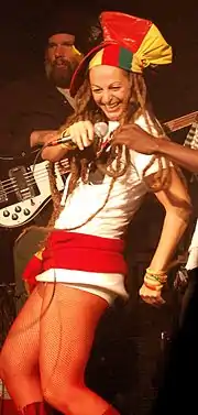 Ari Up (1962–2010), was born Ariane Daniela Forster in Munich, Germany, and was a vocalist and member of The Slits, a British punk rock band. She was only 14 years old she became The Slits' frontwoman in 1976, and was known as the most flamboyant and eccentric member of the group. She took guitar lessons from Joe Strummer of The Clash.[58][59] Up's mother is the music promoter Nora Forster, a publishing heiress of the newspaper Der Spiegel[60] whose home became a crash pad and meeting place for many rock musicians, and who financially helped support The Slits, the Sex Pistols and The Clash. Ari Up grew up within this creative milieux where she was raised by Forster and John Lydon.[61][62][63]