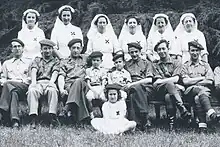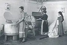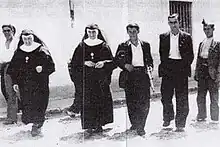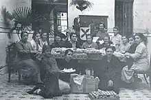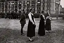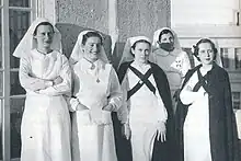 Nationalist supporting women behind Nationalist lines also sometimes were involved in auxiliary roles. This included working as nurses, provisioners and support personnel.[33][32] They were encouraged to do so by men as a means of supporting the traditional Spanish family structure.[32]