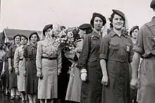 Spanish women supported the Republican war efforts behind the front lines. They made uniforms, worked in munitions factors, and served in women's corps similar to those organized by the US and British during World War I.[39] In Madrid, women would go in pairs to cafes around the city, collecting money to support in the war effort.[39] Many women on the Republican side joined JSU, serving in civilian roles near the front.[40]