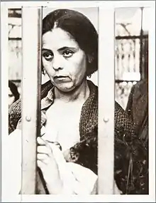 Republican women in prisons often faced situations their male counterparts did not have to deal with.[44] Unlike their male counterparts, many women given death sentences for military rebellion were given the status of common criminals.[44] Some women in Nationalist zones found their husbands arrested and executed because a Nationalist soldier coveted her.[44][41] Children were removed from their mothers, left in the care of family or to live on the streets. Some women with sons who fought for the Republic were forced to watch them be tortured or executed.[44][41] Prior to going to prison, some women were raped by male police officers. Some women were removed from prison at night by Falangists who would then rape them. During these nights away from prison by Falangist forces, some women were also branded with a yoke and arrows.[44] Borrowing from a practice being used by Mussolini's forces in Italy, women in prison were often forced to drink castor oil with the intention of giving them diarrhea. The purpose was to humiliate these women when they soiled themselves.[37] Women in prison often had a toilet ratio of one toilet for every 200 women.[44] By the end of the Civil War, the Las Ventas Model Prison had swelled from 500 female prisoners to over 11,000.[45]