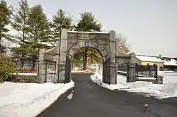 Woodlawn Cemetery is a historic cemetery on Woodlawn Street in Clinton, Massachusetts. The oldest portion was laid out in 1853 by Joshua Thissell in the rural cemetery style popular at the time, and was one of the first municipal projects following the town's incorporation. It occupies a hilly parcel of over 33 acres (13 ha), about 1 mile (1.6 km) from the center of town. It was expanded twice, in the 1890s and in the 1920s. Prominent burials include Erastus and Horatio Bigelow, the town's early leading businessmen.[2]