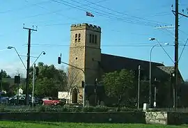 Woodville has one building listed on the South Australian Heritage Register: St Margaret's Anglican Church (officially the Church of St Margaret of Scotland), located at 789-791 Port Road, was dedicated in 1856 and is constructed of picked limestone. The structure is dominated by a rectangular tower and the church contains stained glass windows which honour local pioneers.[7] A lych-gate, which is also heritage listed, was built in 1919 as a memorial to Woodville men who served in World War I. The church is significant as one of several 'village' churches built within the Adelaide districts between 1836 and 1860, as well as its representation of the development of the early Anglican Church within South Australia.[16] (The Brocas Museum, at 111 Woodville Road, was listed when it lay in the bounds of Woodville;[17][18] however, it is now within the suburb of St Clair, a new suburb created in 2012.)