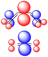 One symmetry element is conserved in this transformation – the mirror plane through the center of the reactants as shown to the left. The molecular orbitals of the reactants are the set {Ψ1, Ψ2, Ψ3, Ψ4} of molecular orbitals of 1,3-butadiene shown above, along with π and π* of ethylene. Ψ1 is symmetric, Ψ2 is antisymmetric, Ψ3 is symmetric, and Ψ4 is antisymmetric with respect to the mirror plane. Similarly π is symmetric and π* is antisymmetric with respect to the mirror plane.
