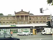 Wuppertal Hauptbahnhof (German for Wuppertal central station) is a railway station in the city of Wuppertal, just south of the Ruhr Area, in the German state of North Rhine-Westphalia. It is on the line between Düsseldorf/Cologne and Dortmund. The 1848 reception building is one of the oldest of its kind. The station was originally Elberfeld station and has been renamed several times since. Since 1992, it has been called Wuppertal Hauptbahnhof.[5] Wuppertal Hauptbahnhof is also the site of lost luggage operations for Deutsche Bahn.[6]