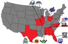 Map of X-League Teams