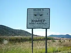 Welcoming sign where the Orange River is crossed in the direction of the Xhariep District Municipality