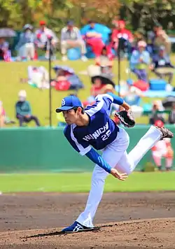 - ↑ "プロ注目の東北福祉大・佐藤13Kで白星発進 (Tohoku Fukushi's Future pro, 13K man Satō)" (in Japanese). Nikkan Sports. 13 April 2016. Retrieved 23 August 2016.