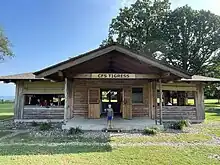 In 1914 the Board of Trustees of the Youngstown YMCA adopted a permanent policy of conducting a summer camp for boys. The campsite in 1914 was established at Cannon's Mills on Little Beaver River. Land for the camp was donated by John H. Fitch in addition to a sum of money sufficient to operate the camp for a five-year period.[2] Thirty-two campers were enrolled for the first year, and the camp continued to operate at that site for the summers of 1915, 1916 and 1917. During these first years, a common fashion accessory for campers was a forked stick; these had to be carried for protection due to the abundance of rattlesnakes and copperheads in the area.[1] Fortunately, this reptilian problem was rectified through the relocation of the camp grounds.