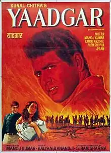 Yaadgar is a 1970 Hindi film produced and directed by S. Ram Sharma. The film stars Manoj Kumar, Nutan, Pran, Prem Chopra, Madan Puri, Kamini Kaushal and Rajnath as a villager. The music is by Kalyanji Anandji. This film has some very memorable songs.