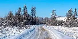 The Yana-Oymyakon Highlands are a mountain region of the East Siberian System located between the southern reaches of the Verkhoyansk Range to the west, the Suntar-Khayata Range to the southwest and the Chersky mountain range to the northeast. The main highland features are the vast Yana Plateau in the northwest, the Elgi Plateau in the middle and the Oymyakon Plateau in the southeast. The highlands include the Kuydusun and Agalkin intermontane basins, as well as mountain chains of moderate altitude, such as the Nelgesin and Tirekhtyakh ranges.[4]