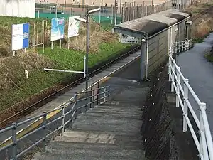 The station consists of one ground-level side platform serving a single bi-directional track. There is no station building, and a waiting area is placed on the platform.The station is unattended.