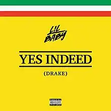 "Yes Indeed" is a song by American rapper Lil Baby and Canadian rapper Drake. It was released by 4 Pockets Full, Wolfpack Music Group, Quality Control Music, Motown and Capitol Records on May 17, 2018 as the second single from Lil Baby's debut studioalbum Harder Than Ever, which was released a day later.[1] The song was produced by Wheezy and B-Rackz. It reached number one on Billboard's Streaming Songs chart,[3] while peaking at number six on the US Billboard Hot 100, becoming Lil Baby's first top 10 hit.