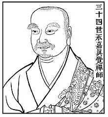 Yongjia Xuanjue (Chinese: 永嘉玄覺; pinyin: Yòngjiā Xuānjué; Wade–Giles: Yung Chia; Japanese: 永嘉玄覚 or Yōka Genkaku; Korean: 영가현각 or Yongga Hyǒngak; Vietnamese: Vĩnh Gia Huyền Giác), also known as Yongjia Zhenjue (Chinese: 永嘉真覺; pinyin: Yòngjiā Zhēnjué),[1] was a Zen and Tiantai Buddhist monk who lived during the Tang dynasty. The name Yongjia is derived from the city of his birth, which is now called Wenzhou.[2] He is also known by his nickname "The Overnight Guest" because of his first encounter with his teacher, Huineng. On a visit to Caoxi (漕溪), where Huineng's Nanhua Temple is located, Yongjia was convinced to stay just one night, during which his enlightenment was acknowledged. He supposedly died while meditating in 713.[3] He is best remembered today as the author of the Song of Enlightenment, often known by its Japanese name Shodoka (證道歌).[2][4] This work remains popular in contemporary Zen practice.