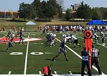 The Lions maintain a competitive rivalry with their crosstown rivals, the Toronto Varsity Blues, and the two teams play annually in a game called the Red & Blue Bowl.[24] The first meeting occurred on September 11, 1970, which was an exhibition match won by the Varsity Blues. At a time when Toronto was a dominant program, the Varsity Blues won the first 14 match ups until York won their first Red & Blue Bowl game in 1984.[25] York's longest stretch of dominance began in 1996 when the Lions won their first of 12 consecutive matches, which ended after their 2007 victory.[24][25] Overall, as of the 2022 season, the Lions hold a 19–33 record in the Red & Blue Bowl.[24][26]