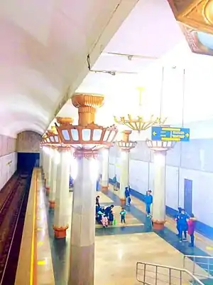 Yunus Rajabiy is a station of the Tashkent Metro on Yunusobod Line. It was opened on 24 October 2001 as part of the inaugural section of the line, between Ming Orik and Habib Abdullayev.[1] It is a transfer station to Amir Temur Xiyoboni, Chilonzor Line.