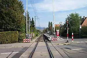 The station has a single track, and a single platform. The only building is a simple shelter on the platform. Immediately to the west of the station, the line crosses Schweighofstrasse by means of a level crossing.[3]