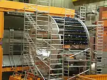 The German national laboratory DESY was founded in 1959 and started operating its first particle accelerator in 1964. Since then, it has been a highly regarded center for particle physics, photon science, astroparticle physics, and the development, construction and operation of particle accelerators. The design effort for ZEUS can be traced back to 1982.[4] A Letter of Intent was submitted in 1985.[5] The ZEUS detector was operational with the first collisions of the HERA collider in 1992. The last electron–proton collisions at ZEUS were recorded on 30 June 2007.[6] The other multi-purpose experiment at the HERA collider was the competing H1 experiment. Since May 2012, the former ZEUS detector hall has been used as a lab space for the international European XFEL project.[7]