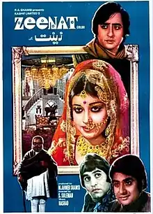 Zeenat is a 1975 Pakistani film directed by S. Suleman. Shahnam played the title role in the film opposite Nadeem and Shahid. It revolves around the sufferings of a baby girl and her journey to womanhood, until she is accepted by her grandfather, who hated her throughout his life.[1] The Mehdi Hassan's ghazal featured in the film, "Rafta Rafta Wo Meri Hasti Ka Samaa Hogye" became hugely popular and he eventually went on to win a Nigar Award for it as a playback singer.[2][3]