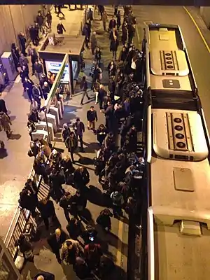 ![]() Passengers boarding a westbound bus. | |||||||||||||||||||||||||||||||