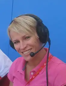 ![]() Ajkler working as a commentator at the 2010 European Athletics Championships | |